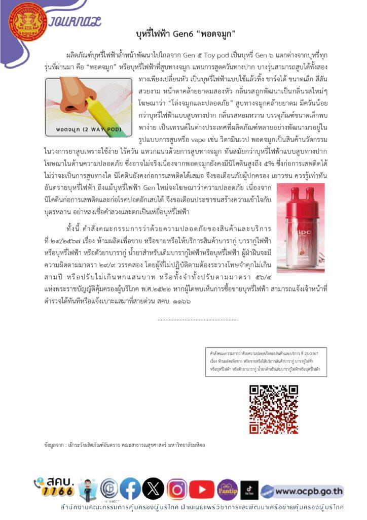 บุหรี่ไฟฟ้า Gen6 “พอดจมูก” 09/07/2025 FacebookFacebookXTwitterLINELine FacebookFacebookXTwitterLINELine