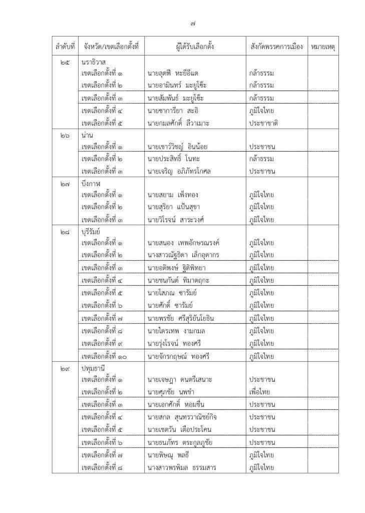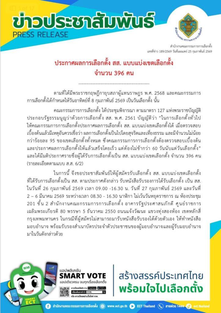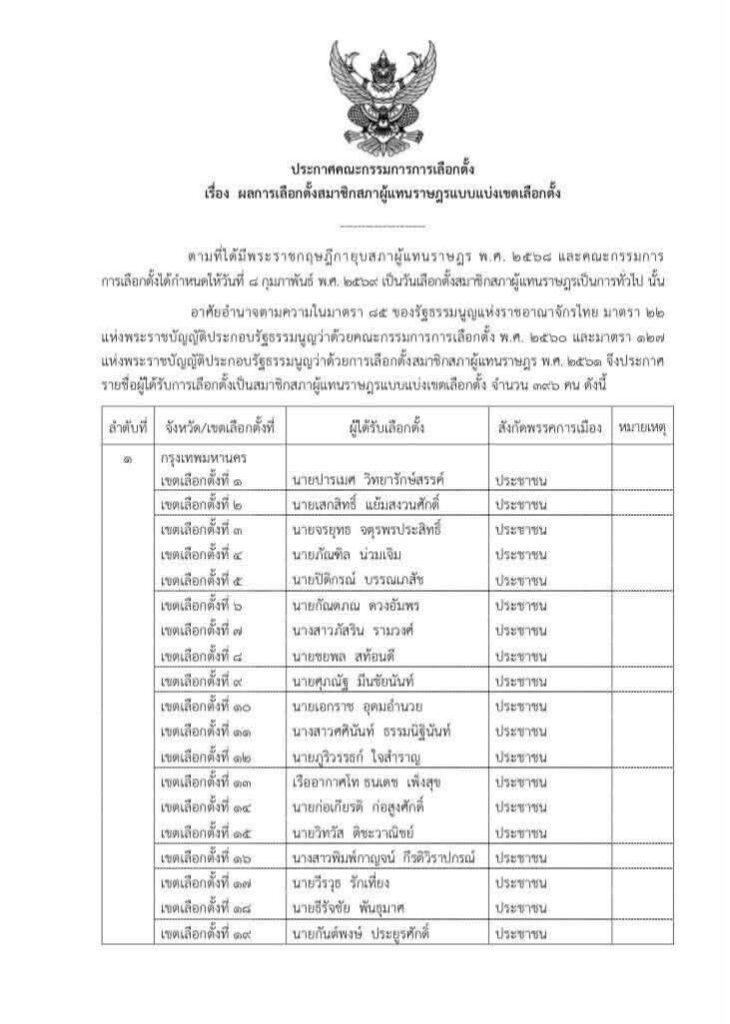 ประกาศผลการเลือกตั้ง ส.ส. แบบแบ่งเขตเลือกตั้ง อย่างเป็นทางการ