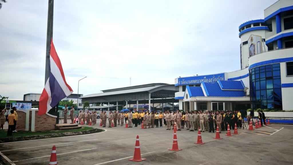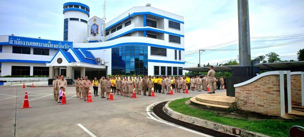 เทศบาลเมืองสนั่นรักษ์ นำโดยนายสุรินทร์ คำสิน ปลัดเทศบาลเมืองสนั่นรักษ์ ได้นำหัวหน้าส่วนราชการ เจ้าหน้าที่ พนักงานเทศบาลเมืองสนั่นรักษ์ ร่วมกิจกรรมเนื่องในวันพระราชทานธงชาติไทย 28 กันยายน (Thai National flag day) ประจำปี 2568 เพื่อเป็นการน้อมระลึกในพระมหากรุณาธิคุณของพระบาทสมเด็จพระมงกุฎเกล้าเจ้าอยู่หัว ที่ทรงพระราชทานธงไตรรงค์และธงชาติไทย ธงชาติถือเป็นสัญลักษณ์อันสูงสุดของชาติ และได้จัดให้มีพิธีเคารพธงชาติ และร้องเพลงชาติไทย ในวันที่ 29 กันยายน 2568 เวลา 8:00 น. ณ บริเวณหน้าเสาธง อาคารสำนักงานเทศบาลเมืองสนั่นรักษ์