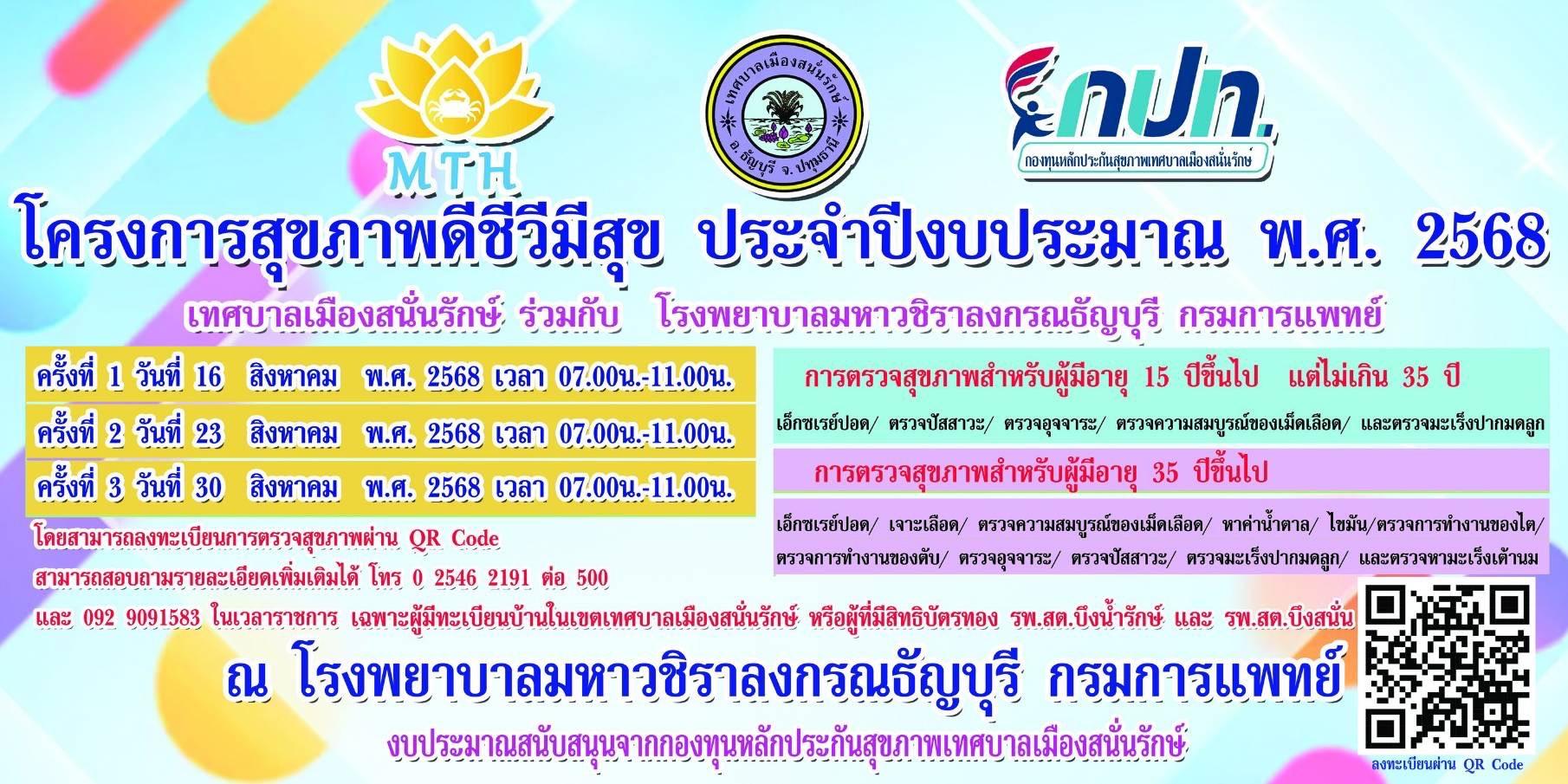เทศบาลเมืองสนั่นรักษ์ ร่วมกับ โรงพยาบาลปทุมธานี จัดโครงการสุขภาพดี ชีวีสุข ประจำปีงบประมาณ พ.ศ. 2568